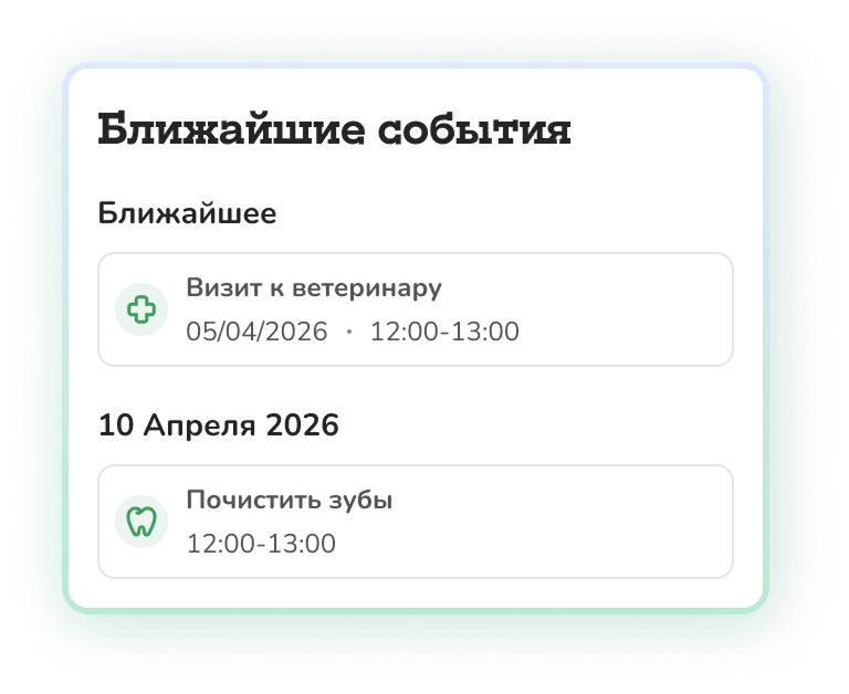 Создавайте заметки об особенностях питомца и события в "Календаре"