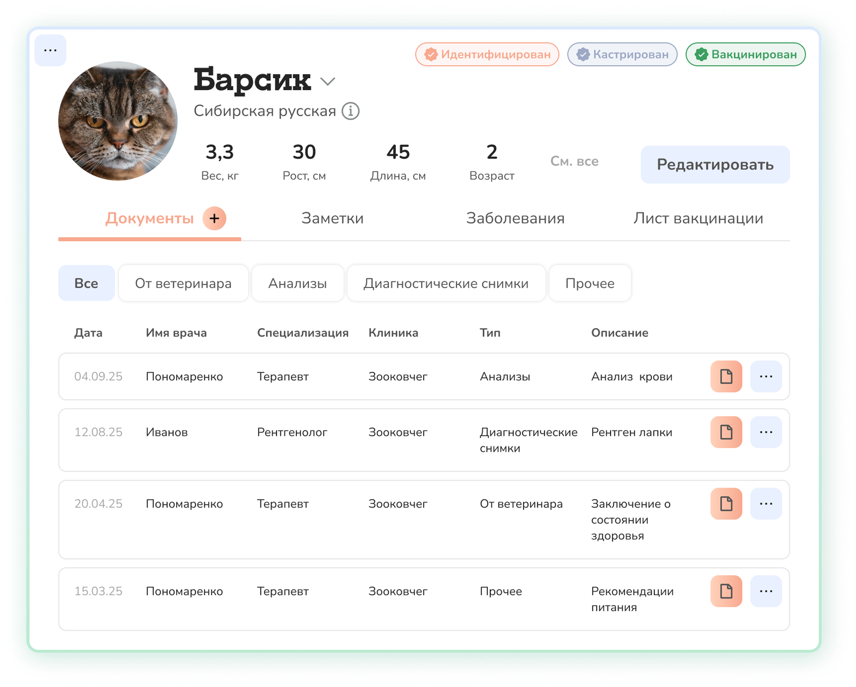 Храните все данные о питомце в одном месте и всегда под рукой!